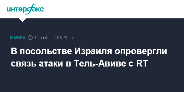 В посольстве Израиля опровергли связь атаки в Тель-Авиве с RT