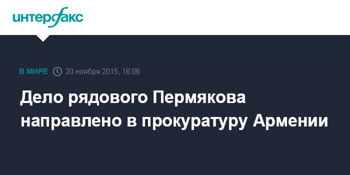 Дело рядового Пермякова направлено в прокуратуру Армении