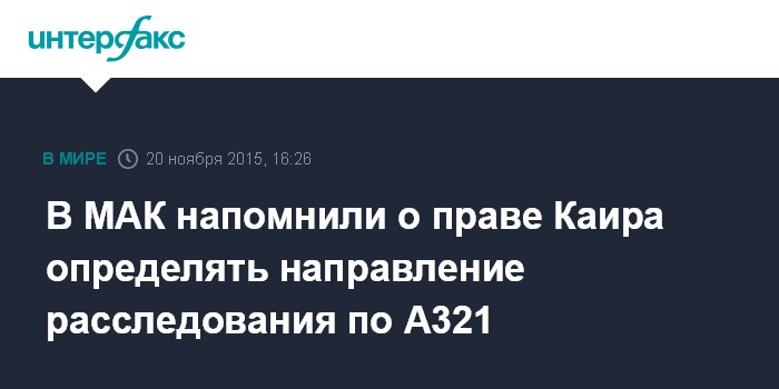 Москва. 20 ноября. INTERFAX.RU - Право выбора направления расследования крушения российского А321 на Синае принадлежит египетским властям, заявил заместитель председателя МАК Алексей Морозов.
