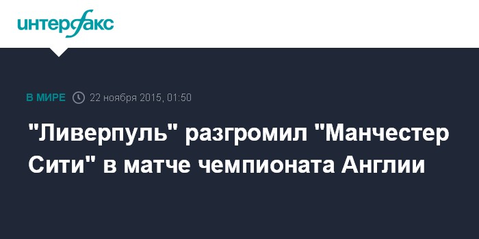 Москва. 22 ноября. INTERFAX.RU - В матче 13-го тура чемпионата Англии по футболу "Ливерпуль" добился крупной победы над "Манчестер Сити" на поле соперника.