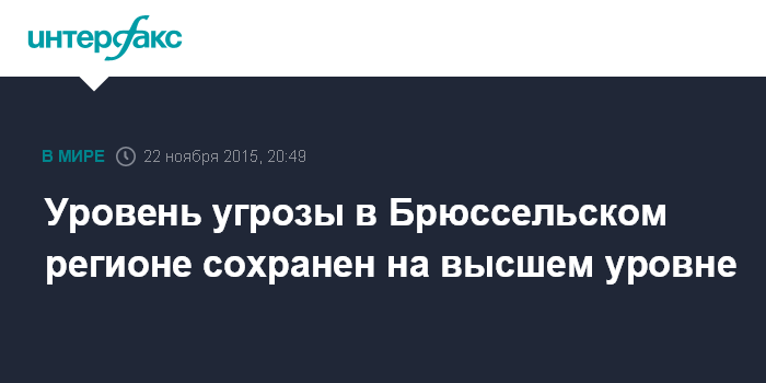 Москва. 22 ноября. INTERFAX.RU - Бельгийский орган координации и анализа угрозы (OCAM) принял в воскресение решение сохранить уровень террористической угрозы на высшей отметке - четвертой - для Брюссельского региона, сообщил в воскресенье вечером на пресс-конференции в Брюсселе премьер-министр Бельгии Шарль Мишель.