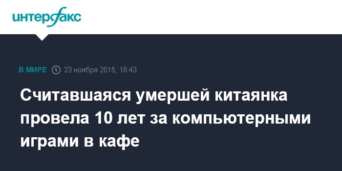 Считавшаяся умершей китаянка провела 10 лет за компьютерными играми в кафе