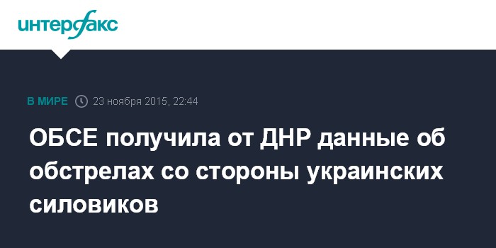 Москва. 23 ноября. INTERFAX.RU - Наблюдательная миссия ОБСЕ получила от самопровозглашенной Донецкой народной республики данные об обстрелах со стороны украинских силовиков, сообщили в пресс-службе полпреда ДНР Дениса Пушилина.