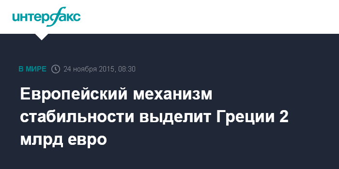 Москва. 24 ноября. INTERFAX.RU - Греция получит 2 млрд евро в рамках Европейского механизма стабильности (ESM).