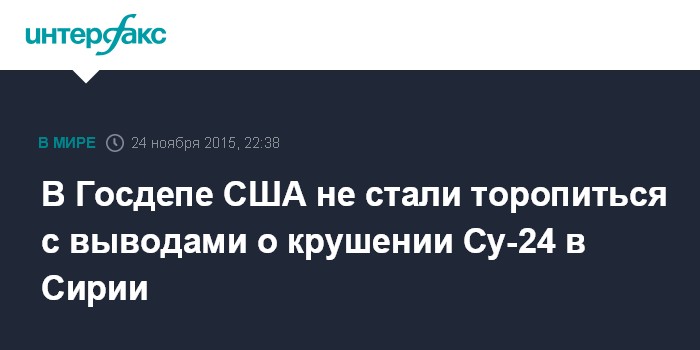 В Госдепе США не стали торопиться с выводами о крушении Су-24 в Сирии