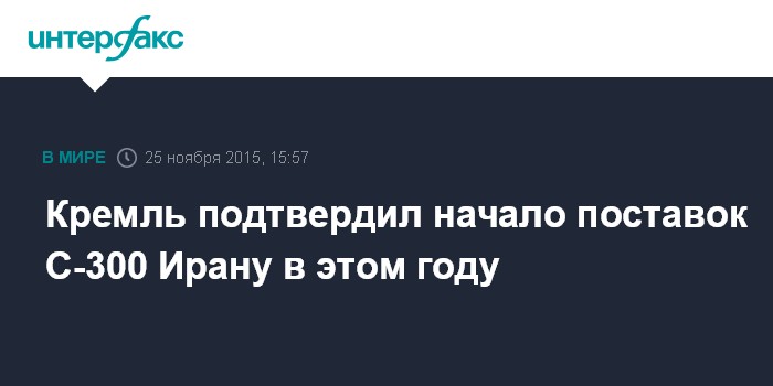 Москва. 25 ноября. INTERFAX.RU - Поставки модернизированных комплексов С-300 Ирану должны начаться уже в текущем году, сообщил "Интерфаксу" помощник президента РФ Владимир Кожин.