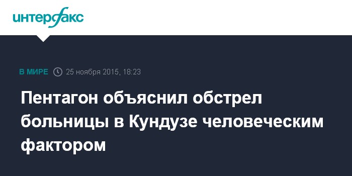 Москва. 25 ноября. INTERFAX.RU - Командующий международными силами содействия безопасности в Афганистане американский генерал Джон Кэмпбелл заявил в среду, что человеческий фактор привел к обстрелу больницы "Врачей без границ" в Кундузе в октябре этого года.