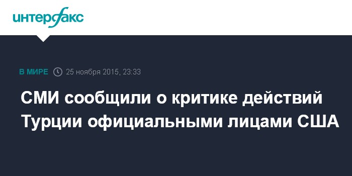 Москва. 25 ноября. INTERFAX.RU - Ряд официальных лиц в США полагает, что Турции не следовало сбивать российский самолет Су-24, даже если он нарушил ее воздушное пространство, сообщил в среду американский телеканал CBS.