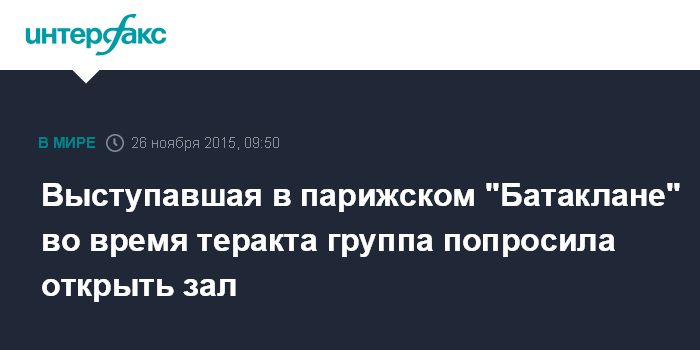 Выступавшая в парижском "Батаклане" во время теракта группа попросила открыть зал