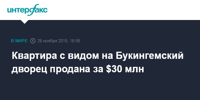 Квартира с видом на Букингемский дворец продана за $30 млн