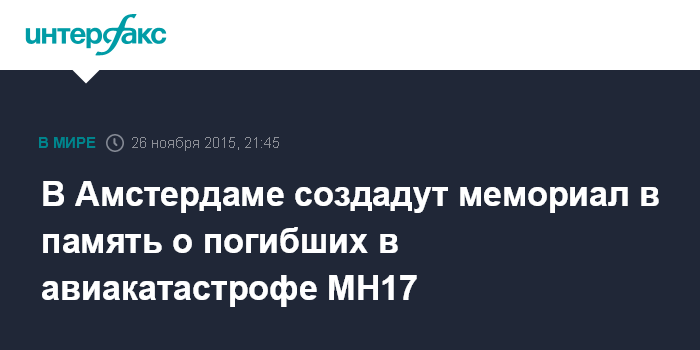 В Амстердаме создадут мемориал в память о погибших в авиакатастрофе MH17