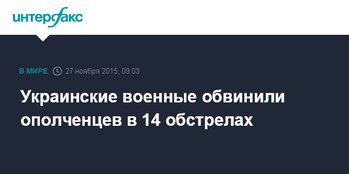 Москва. 27 ноября. INTERFAX.RU - Ополченцы с 18:00 до 23:00 четверга 14 раз открывали провокационный огонь в направлении позиций украинских военных в Донбассе, почти все обстрелы были сосредоточены на донецком направлении