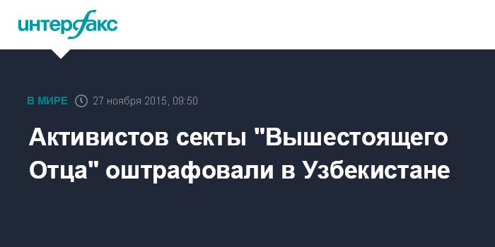 Москва. 27 ноября. INTERFAX.RU - Ташкентский городской суд приговорил руководителей и активистов секты "Изначального Дома Изначально Вышестоящего Отца" (ИДИВО) в республике к выплате штрафов, сообщил "Интерфаксу" в пятницу представитель прокуратуры столицы Узбекистана.