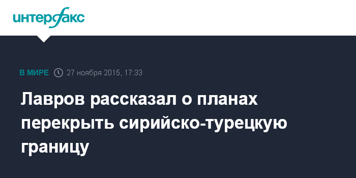 Москва. 27 ноября. INTERFAX.RU - Перекрытие сирийско-турецкой границы во многом решит проблему терроризма в Сирии. Об этом заявил в пятницу глава МИД РФ Сергей Лавров на пресс-конференции в Москве.