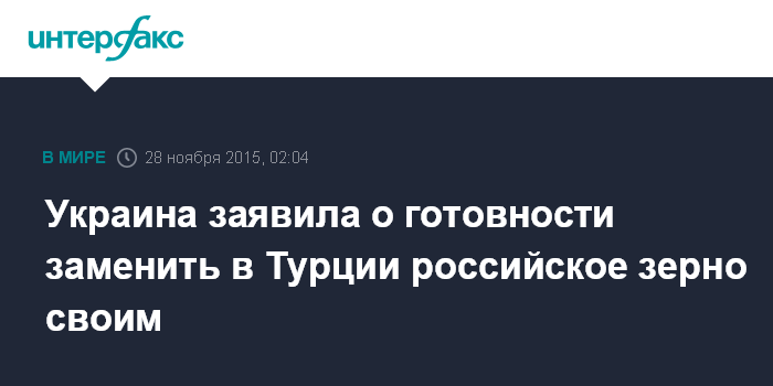 Москва. 28 ноября. INTERFAX.RU - Украина готова заменить Турции российские поставки зерна и подсолнечного масла. Об этом со ссылкой на президента Украинской зерновой ассоциации Владимира Клименко сообщил портал Postimees.