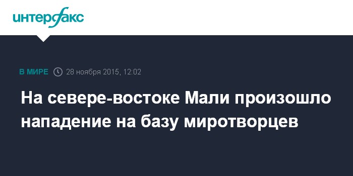 Москва. 28 ноября. INTERFAX.RU - Группа неизвестных боевиков атаковала базу миротворцев ООН на севере-востоке Мали возле города Кидаль, сообщил в субботу межарабский телеканал Al Jazeera.