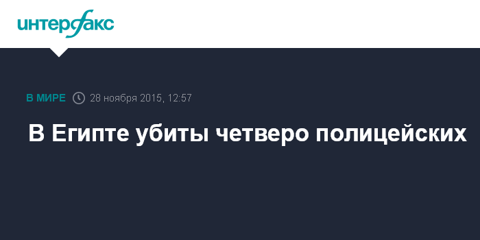 Москва. 28 ноября. INTERFAX.RU - Неизвестные боевики застрелили четырех полицейских южнее столицы Египта Каира, сообщают западные СМИ со ссылкой на заявление МВД Египта.