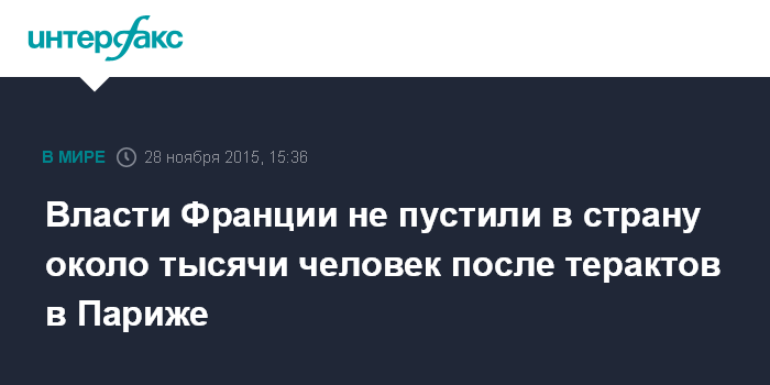 Москва. 28 ноября. INTERFAX.RU - Примерно 1 тыс. человек не получили разрешения на въезд на территорию Франции в период после нападений в Париже 13 ноября, сообщил глава МВД Франции Бернар Казнев, слова которого приводит телеканал France 24.