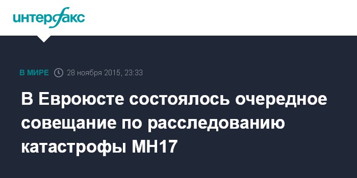 Москва. 28 ноября. INTERFAX.RU - Третье по счету координационное совещание по расследованию крушения малайзийского лайнера рейса МН17 состоялось в пятницу в Евроюсте в Гааге с участием представителей 12 стран, сообщила в субботу пресс-служба Евроюста.