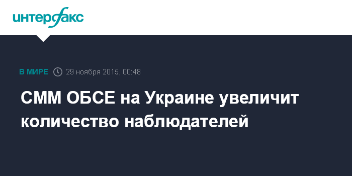 Москва. 29 ноября. INTERFAX.RU - Специальная мониторинговая миссия ОБСЕ на Украине начала увеличивать количество наблюдателей и расширять технические возможности, сообщила Миссия на своей странице в фейсбуке.