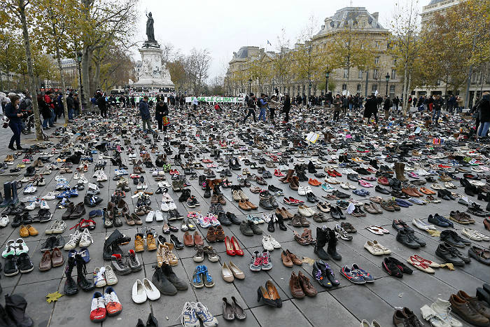 Как отмечает The Guardian, парижские власти не собирались разрешать проведение многотысячного марша в городе, который недавно пережил серию терактов. Предполагалось, что горожане могут принести на площадь пары обуви, которые "промаршируют" вместо них.