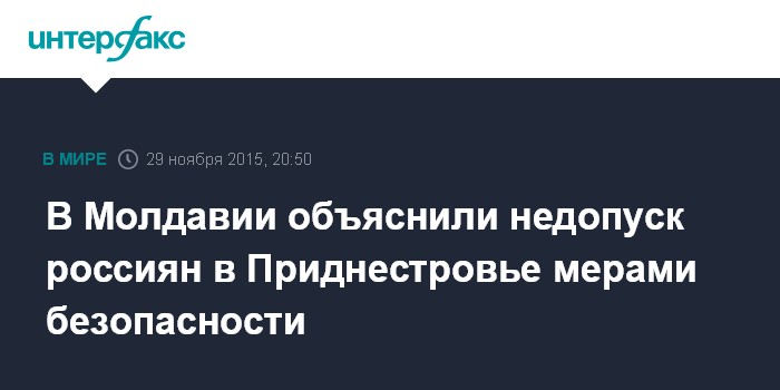 Москва. 29 ноября. INTERFAX.RU - Министр внутренних дел Молдавии Олег Балан заявил, что ряд граждан России не были допущены в Приднестровье через Молдавию "в связи с особыми мерами безопасности".