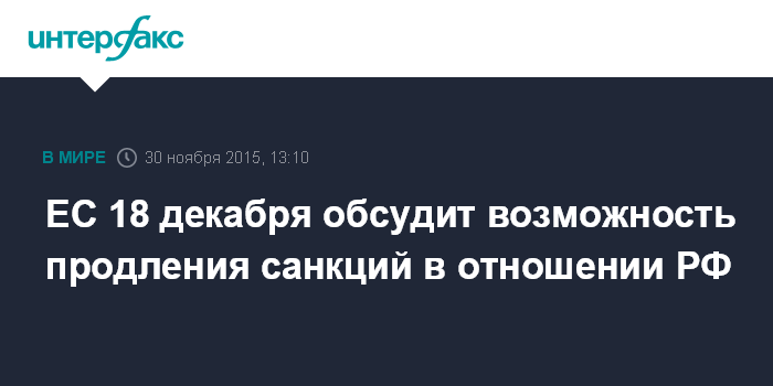 ЕС 18 декабря обсудит возможность продления санкций в отношении РФ