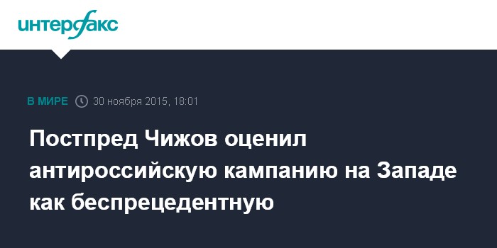 Постпред Чижов оценил антироссийскую кампанию на Западе как беспрецедентную