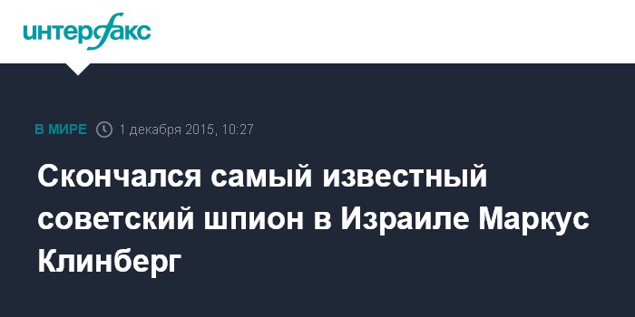 Москва. 1 декабря. INTERFAX.RU - Израильский биолог Маркус Клинберг, который отсидел в тюрьме 15 лет за шпионаж в пользу Советского союза, скончался в Париже в возрасте 97 лет.