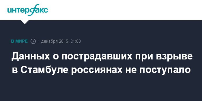 Москва. 1 декабря. INTERFAX.RU - Генконсульство России в Стамбуле не располагает информацией о том, были ли среди пострадавших от взрыва в Стамбуле россияне, сообщили "Интерфаксу" в диппредставительстве.