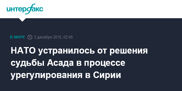 Москва. 2 декабря. INTERFAX.RU - НАТО устранилось от решения судьбы Башара Асада в политическом урегулировании сирийского конфликта.