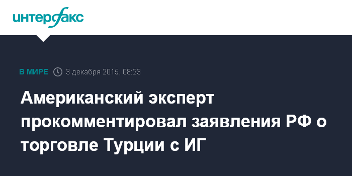 Американский эксперт прокомментировал заявления РФ о торговле Турции с ИГ