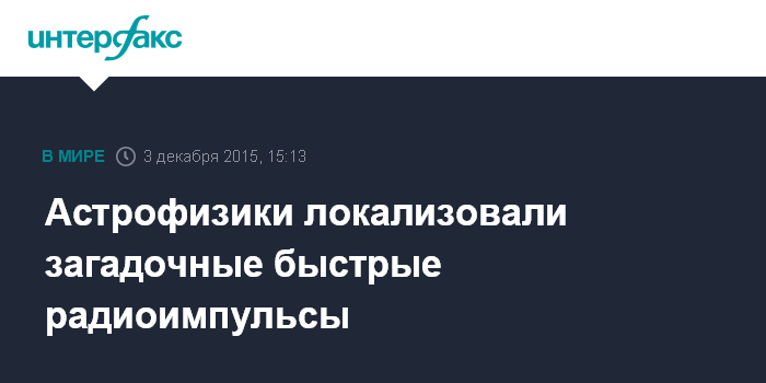Москва. 3 декабря. INTERFAX.RU - Международная группа астрофизиков сделала важный шаг к пониманию загадочных быстрых радиоимпульсов (Fast Radio Bursts, FRB), сообщает ресурс N+1, ссылаясь на журнал Nature.