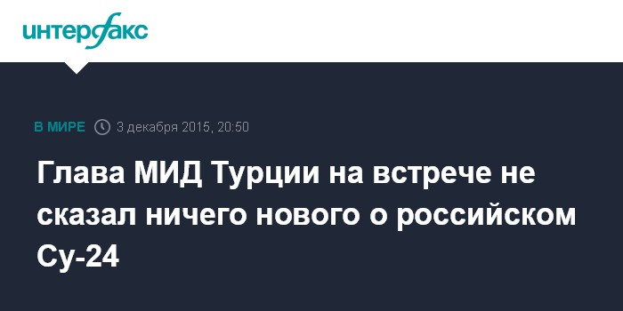 Москва. 3 декабря. INTERFAX.RU - Глава МИД Турции Мевлют Чавушоглу на встрече с главой МИД РФ Сергеем Лавровым не сказал ничего нового об инциденте с российским самолетом Су-24.