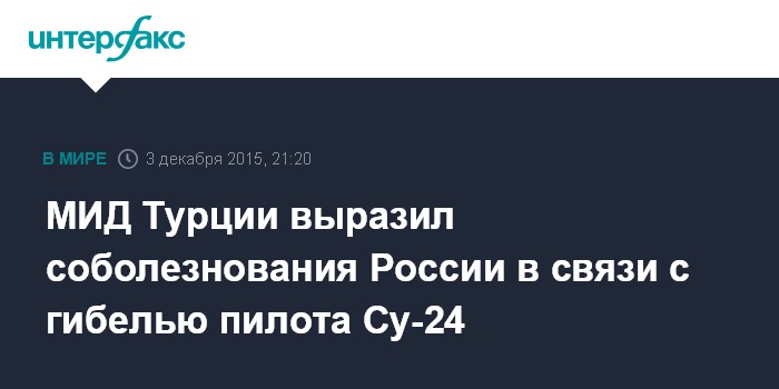Москва. 3 декабря. INTERFAX.RU - Глава МИД Турции Мевлют Чавушоглу передал России слова соболезнования в связи с гибелью российского пилота во время инцидента с российским бомбардировщиком Су-24, сбитого самолетом турецких ВВС.
