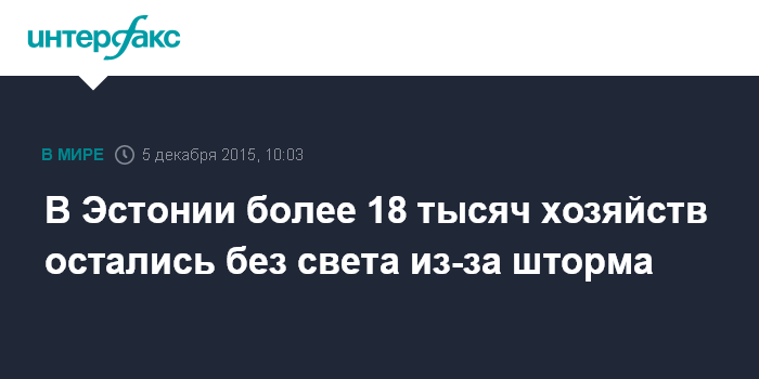 Москва. 5 декабря. INTERFAX.RU - Бушевавший в ночь на субботу в Балтийском море шторм оставил в Эстонии без электричества 18 тыс. 465 домовладений.