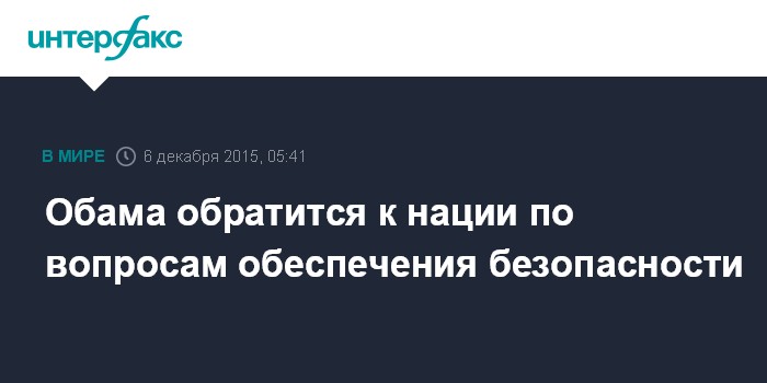 В сообщении отмечается, что президент расскажет о расследовании инцидента в Сан-Бернардино (штат Калифорния), когда двумя террористами были застрелены 14 человек и более 20 получили ранения.