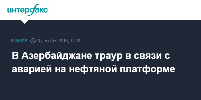 Москва. 6 декабря. INTERFAX.RU - Президент Азербайджана Ильхам Алиев объявил 6 декабря Днем национального траура в связи с трагедией на морской платформе №10 на месторождении "Гюнешли", где в пятницу вечером вспыхнул пожар, сообщает официальный сайт главы государства.
