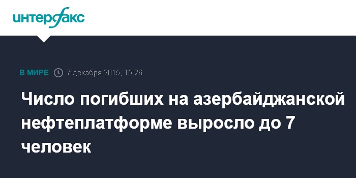 Москва. 7 декабря. INTERFAX.RU - Количество жертв пожара на нефтяном месторождении Азербайджана в акватории Каспийского моря возросло до семи человек.
