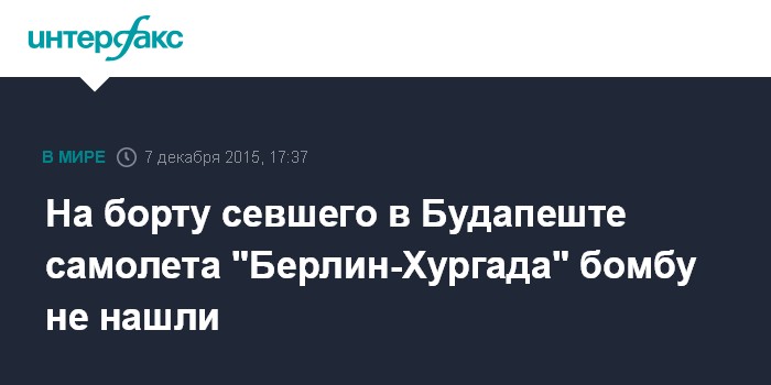 На борту севшего в Будапеште самолета "Берлин-Хургада" бомбу не нашли