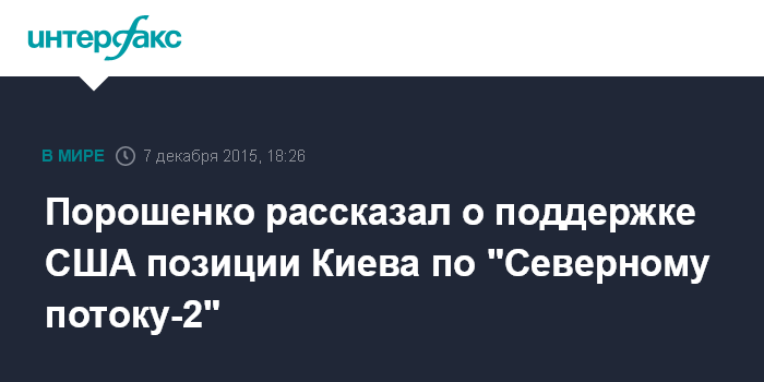 Москва. 7 декабря. INTERFAX.RU - США поддержали позицию Киева о недопустимости реализации проекта "Северный поток-2", сообщил президент Украины Петр Порошенко.