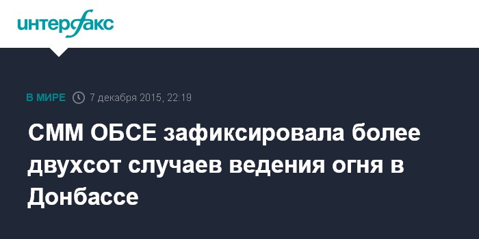 Москва. 7 декабря. INTERFAX.RU - Специальная мониторинговая миссия ОБСЕ на Украине (СММ) отметила увеличение количества случаев нарушения режима прекращения огня в Донецкой и Луганской областях.