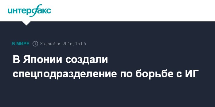 Москва. 8 декабря. INTERFAX.RU - В Японии создана новая спецслужба, в задачу которой входит борьба с террористической группировкой "Исламское государство" (ИГ), в том числе за пределами страны, сообщает во вторник агентство AP.