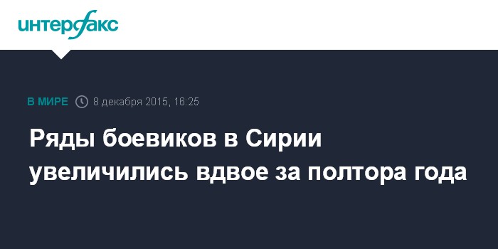 Москва. 8 декабря. INTERFAX.RU - Число приезжающих в Сирию экстремистов за прошедшие полтора года увеличилось более чем в два раза, говорится в докладе международной исследовательской компании Soufan.