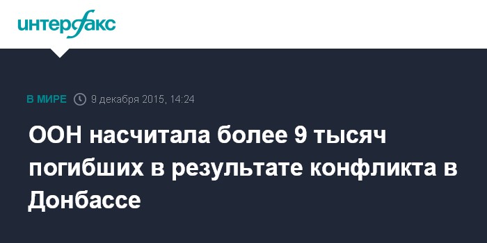 Москва. 9 декабря. INTERFAX.RU - В результате военных действий в Донбассе погибли более 9 тысяч человек, еще более 20 тыс. пострадали, говорится в докладе офиса Верховного комиссара ООН по правам человека.