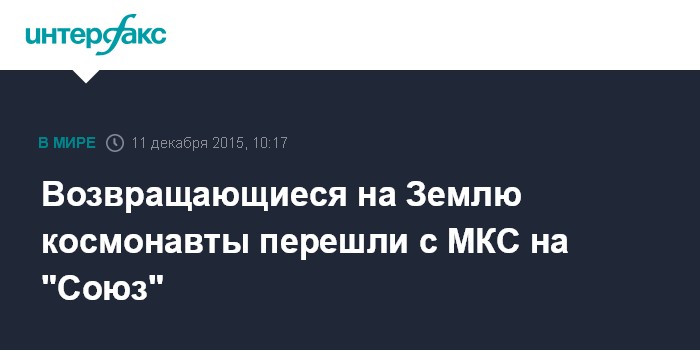 "Космонавты попрощались с коллегами, остающимися на станции. На МКС продолжит нести вахту экипаж в составе бортинженера экспедиции МКС-45/46 Сергея Волкова, бортинженера МКС-43/44/45/46 Михаила Корниенко, командира МКС-45/46 Скотта Келли", - сказал представитель ЦУПа.