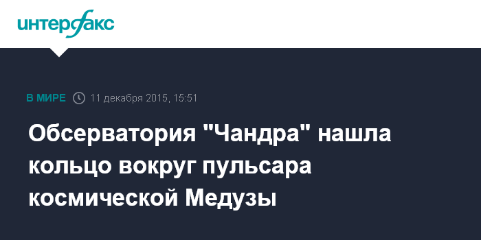 Обсерватория "Чандра" нашла кольцо вокруг пульсара космической Медузы