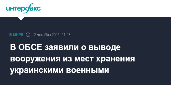 Москва. 12 декабря. INTERFAX.RU - Наблюдатели Специальной мониторинговой миссии ОБСЕ зафиксировали отсутствие в местах хранения ранее зарегистрированного, отведенного вооружения украинских военных, сообщили "Интерфаксу" в пресс-службе миссии.