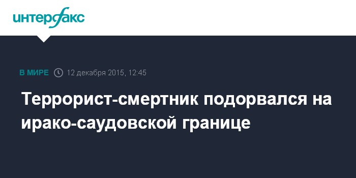 Москва. 12 декабря. INTERFAX.RU - Не менее шести пограничников убиты, 14 ранены в результате атаки террориста-смертника на границе Ирака с Саудовской Аравией, сообщает в субботу ливанское издание The Daily Star.