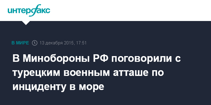 "13 декабря атташе по вопросам обороны, военно-морской атташе при посольстве Турции в Москве контр-адмирал Ахмет Гюнеш был срочно вызван в Министерство обороны Российской Федерации для беседы с заместителем Министра обороны России Анатолием Антоновым", - говорится в сообщении.